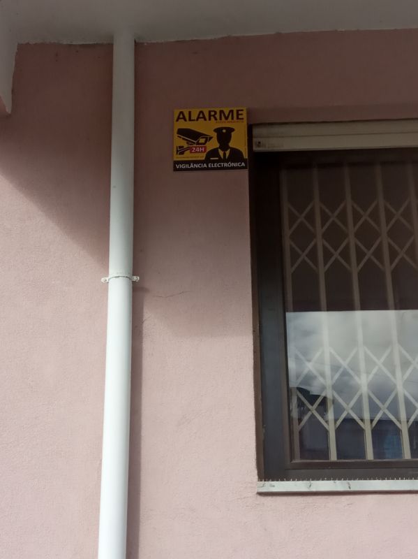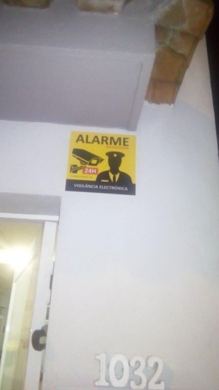 Placas dissuasoras de alarmes e autocolantes.